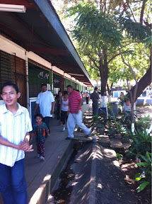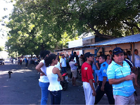 Vemos uma enorme fila de gente ao sol. Não era a escola que procurávamos mas decidimos parar. Escola de los Brasiles, Palmares, Matiare, já fora de Manágua.
