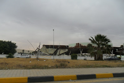A libertação da Líbia começou no dia 17 de Fevereiro de 2011, quando o povo se revoltou corajosamente. Porque foram presos familiares e advogados que se manifestavam pelos mortos massacrados na prisão de Abu Selim, anos antes. E depois os manifestantes cresceram e foram atacados pelos esbirros de Khadaffi. Uns dias depois o povo entrou pelo covil dos assassinos, o quartel Katiba El Fadil no centro de Benghazi. Muros destruidos, edificios incendiados (só a mesquita continua intocada), prisões subterraneas abertas, centenas de prisioneiros libertados, escavada a fossa comum para que haviam sido atirados os corpos dos soldados e policias que se haviam recusado a disparar sobre o povo.