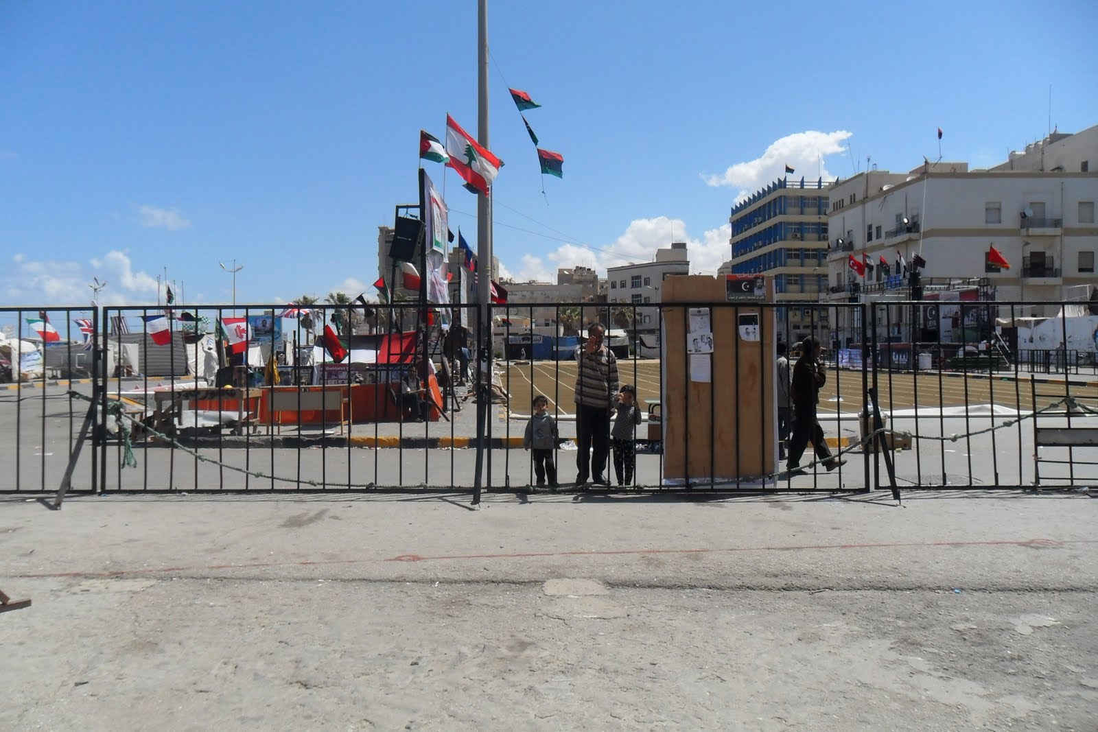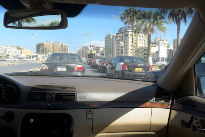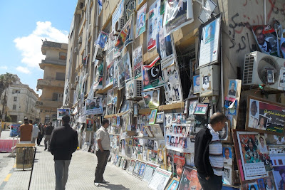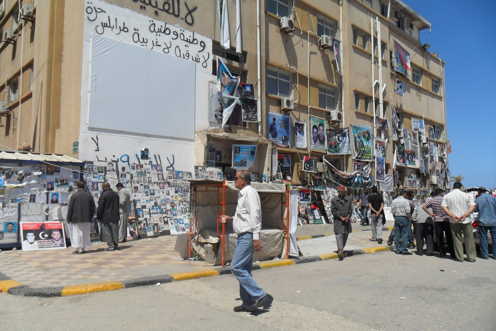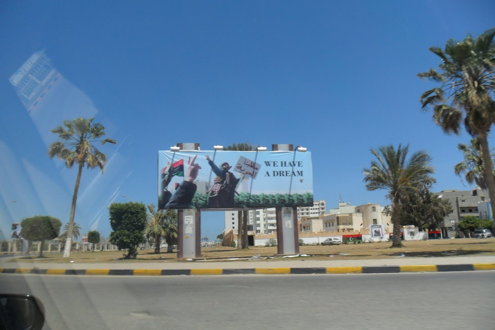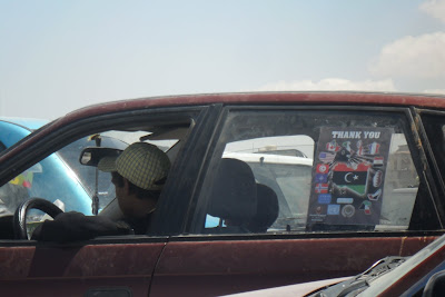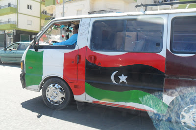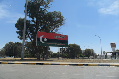 Substituiram os antes omnipresentes cartazes do tirano pela velha bandeira nacional, a da guerra de libertação colonial (disse-me um miúdo de 13 anos "nós nem sabiamos que a tinhamos, na escola e em todo o lado eramos obrigados a venerar a verde do assassino Khadaffi...")