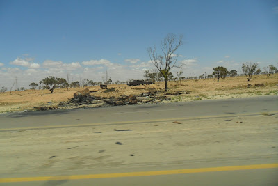 A caminho da linha da frente, acompanhando Mohammed Chebani que vai saudar os bravos da Shebab (juventude), passamos por dezenas de tanques e carros queimados e retorcidos. Apenas a 20 minutos da entrada de Benghazi a aviação francesa destruiu-os, assim impedindo o massacre da cidade ("Merci, Sarkozy" digo eu também, apesar de não gostar do personagem...).