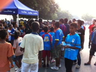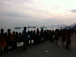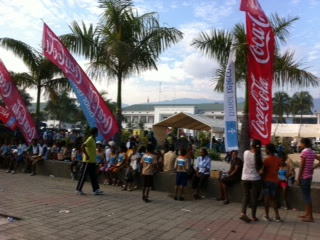 Durante a a maratona de Dili, ontem, enquanto os ultimos maratonistas ainda corriam e centenas recuperavam, num palanque em front do Palacios do Governo um conjunto de marines americanos abrilhantava o ambiente com um animado desfiar de musica rock no palanque. Uma multidão timorense, especada, ouvia e, observava ....