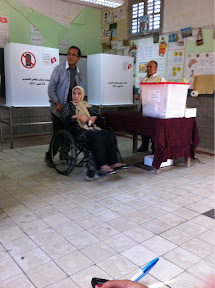 Bairro de Izdihar, Tunis. Um bairro de classe média pelos padrões tunisinos. Esperaram muito? Pergunto a duas mulheres, com ar de mãe e filha, que saiem da escola: "Esperámos 23 anos!" exclama a mais nova. A que parece mãe explica que vieram na hora do almoço para ser mais rápido, na fila só esperaram meia hora.